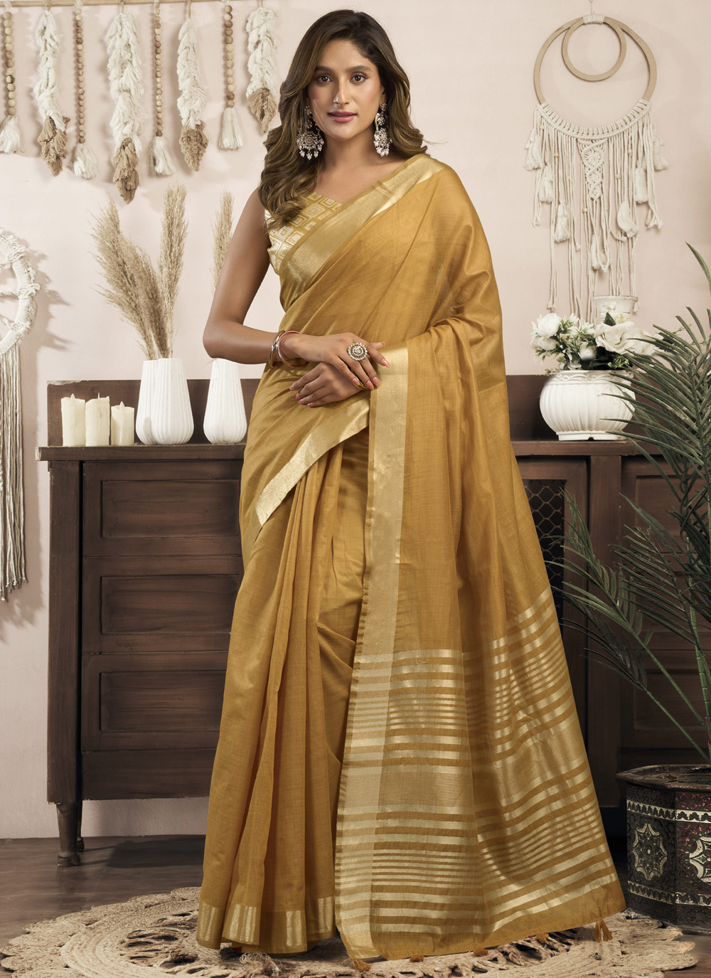 Mustard Plain Classic Cotton Saree