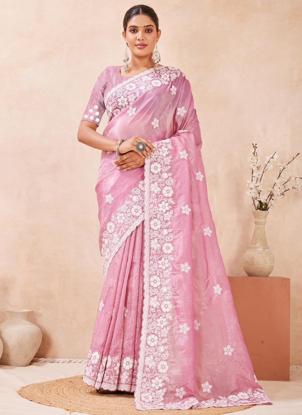 Pink Meenakari Work Silk Festival Trendy Saree