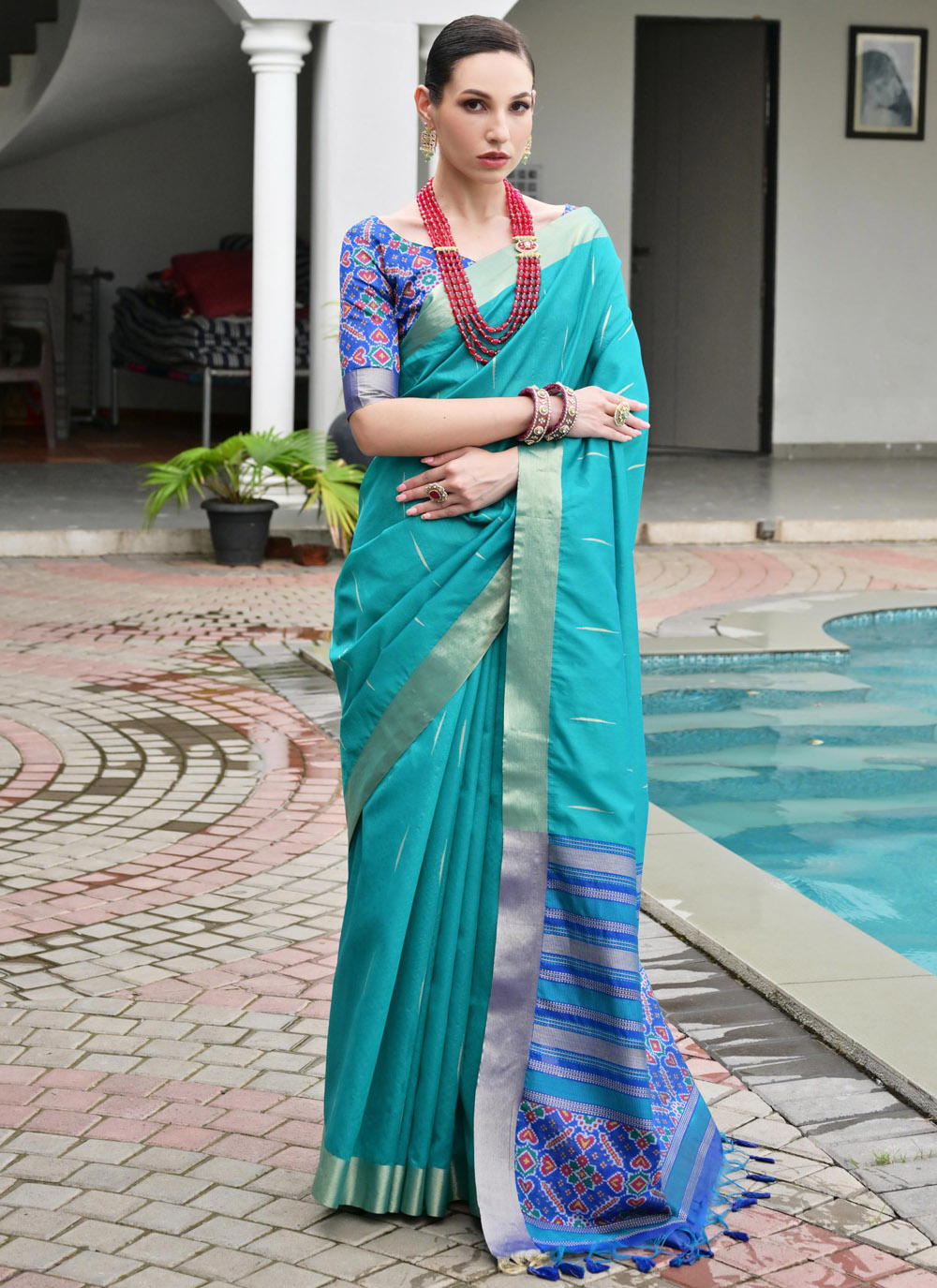 Silk Teal Meenakari Work Contemporary Saree