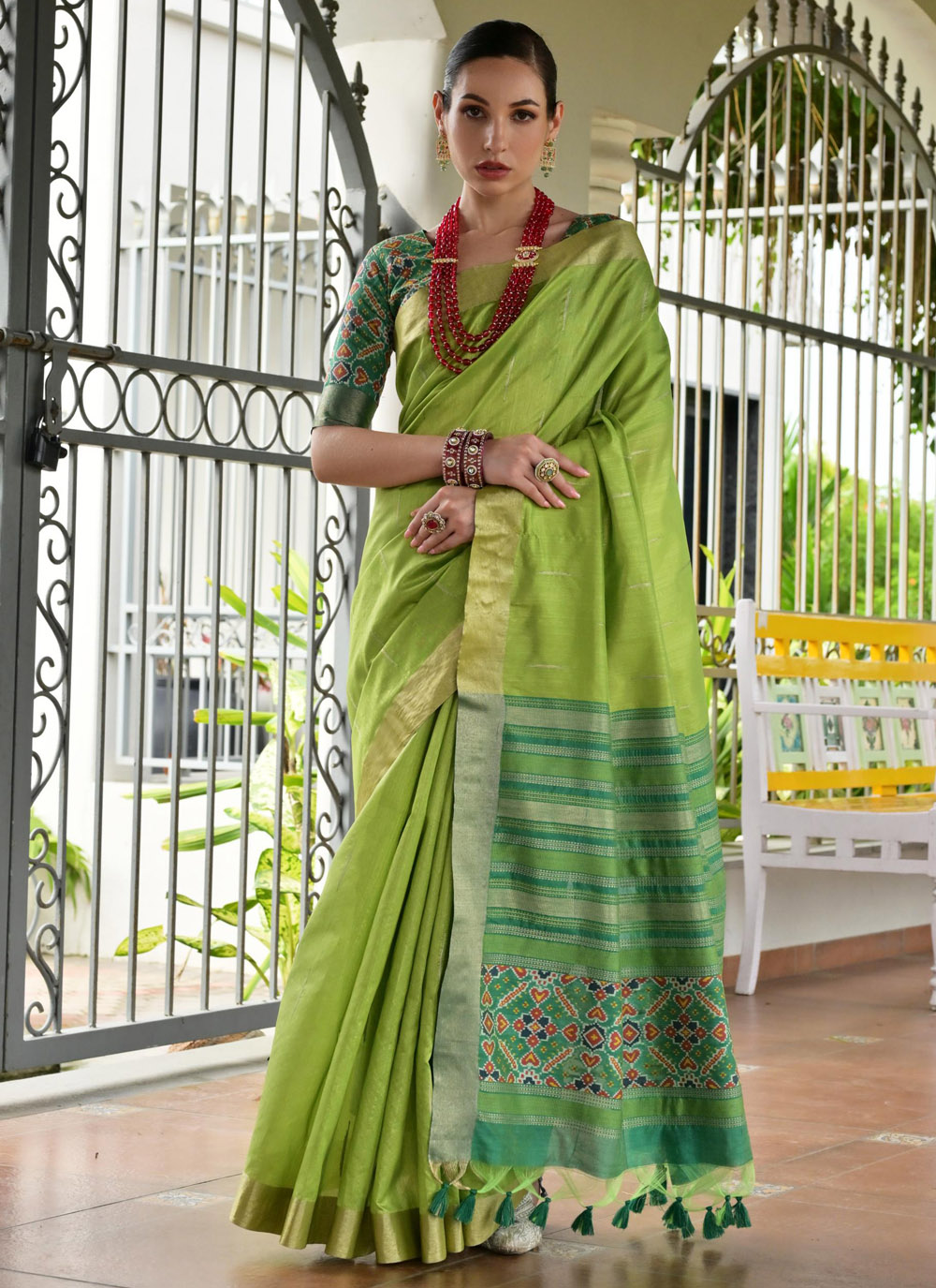 Green Meenakari Work Traditional Silk Saree