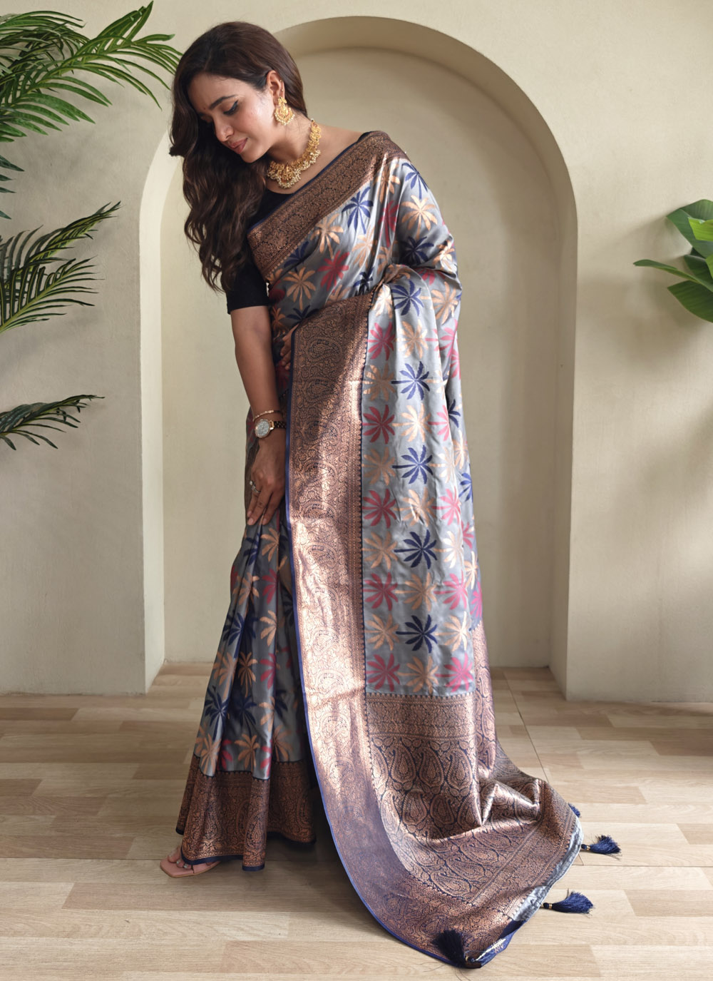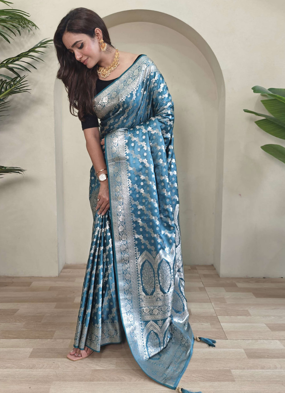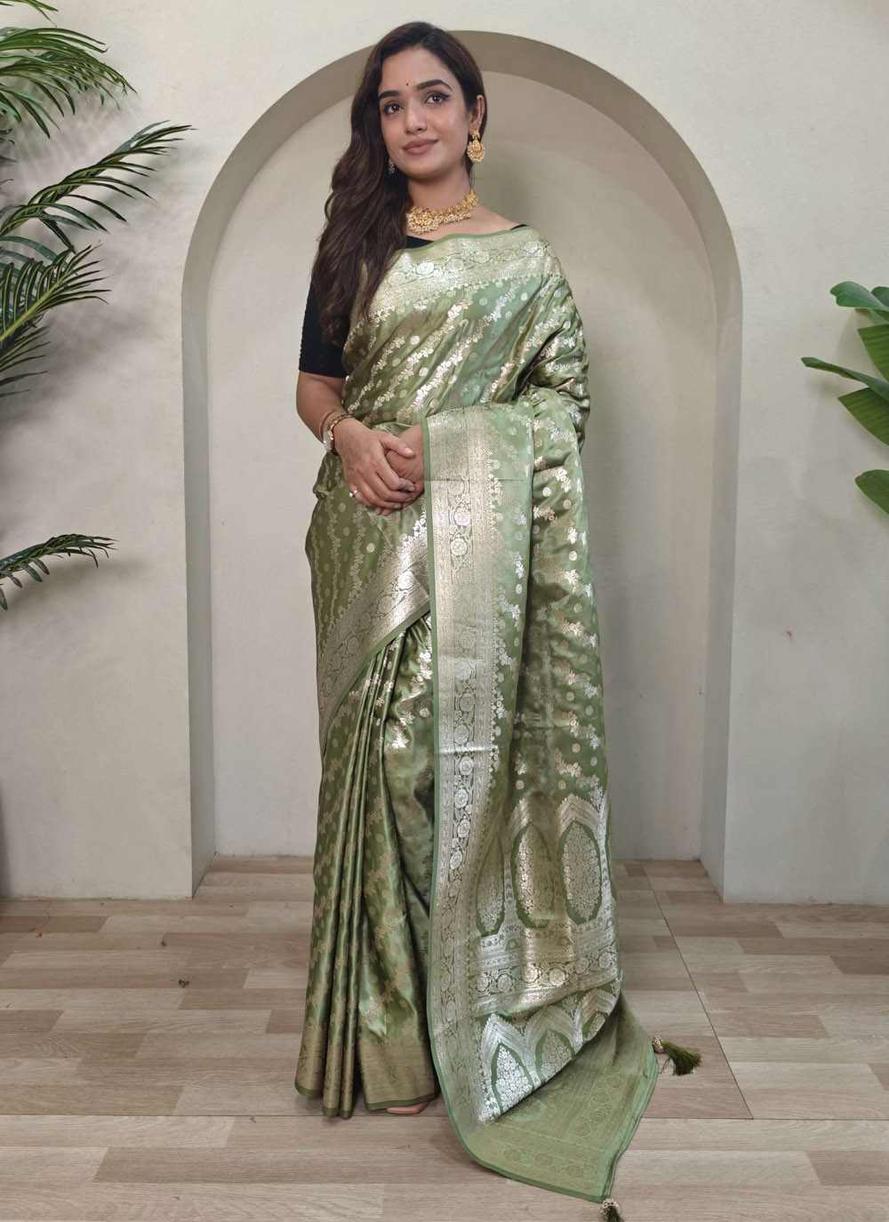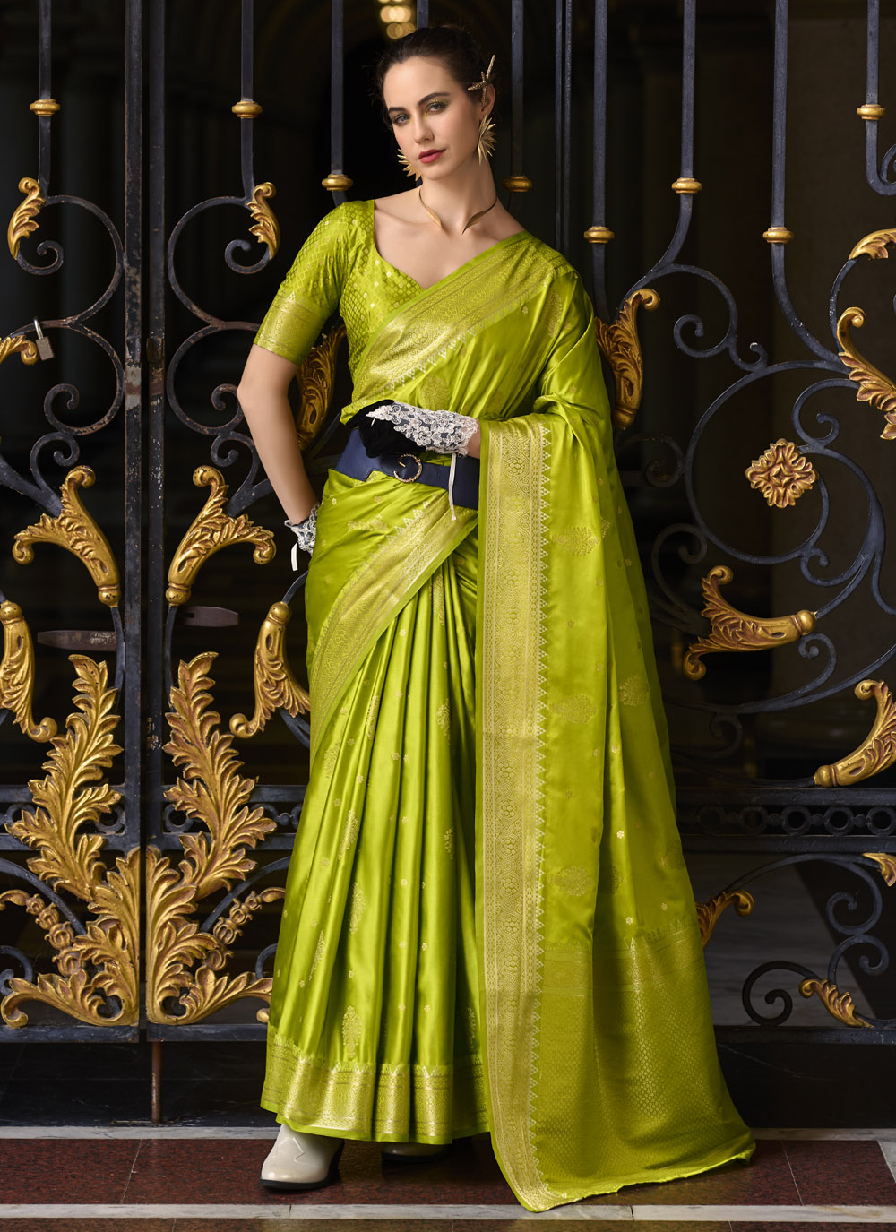 Satin Zari Weaving Work Green Ceremonial Trendy Saree