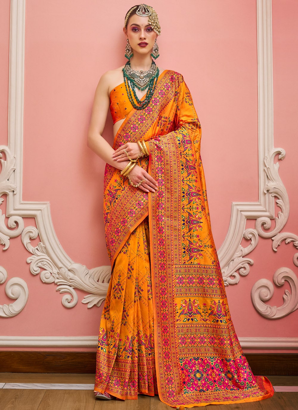 Velvet Chiffon Orange Border Embroidered Contemporary Saree