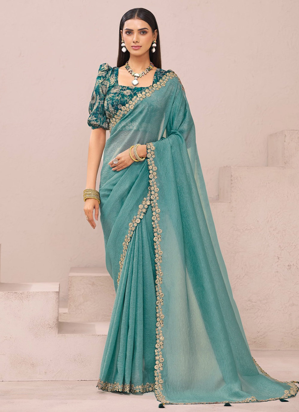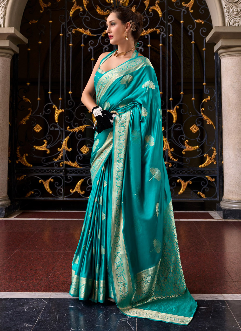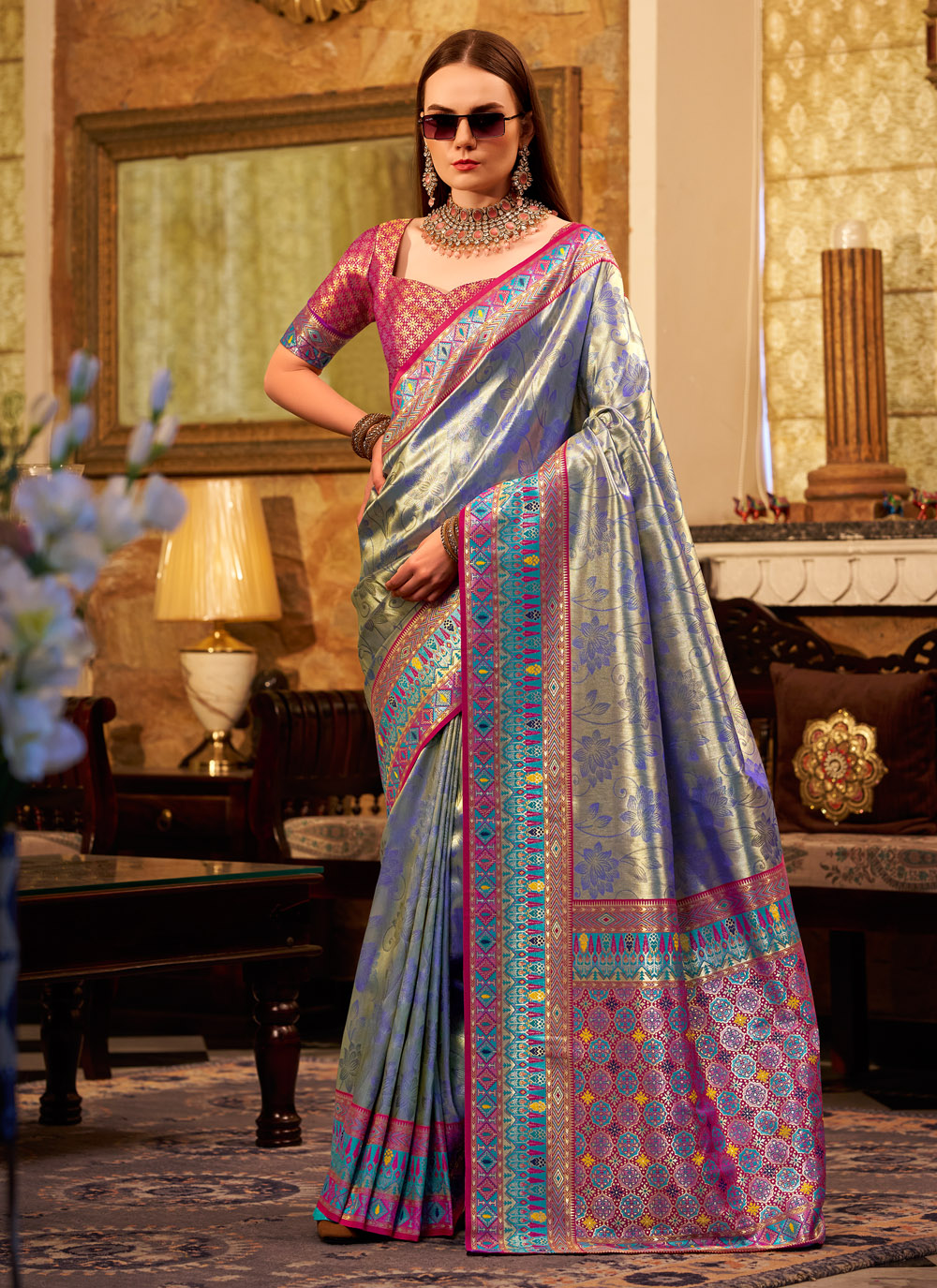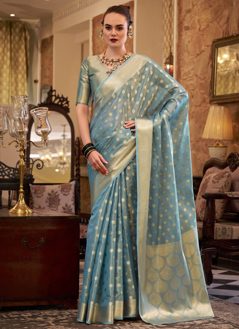 Aqua Blue Kanjivaram Silk Meenakari Weaving Classic Saree