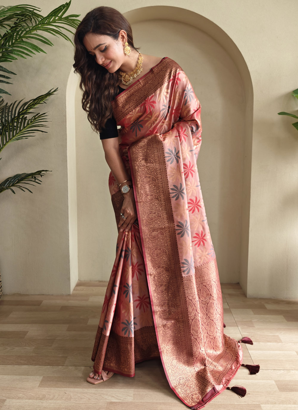 Pink Banarasi Silk Meenakari Trendy Casual Saree