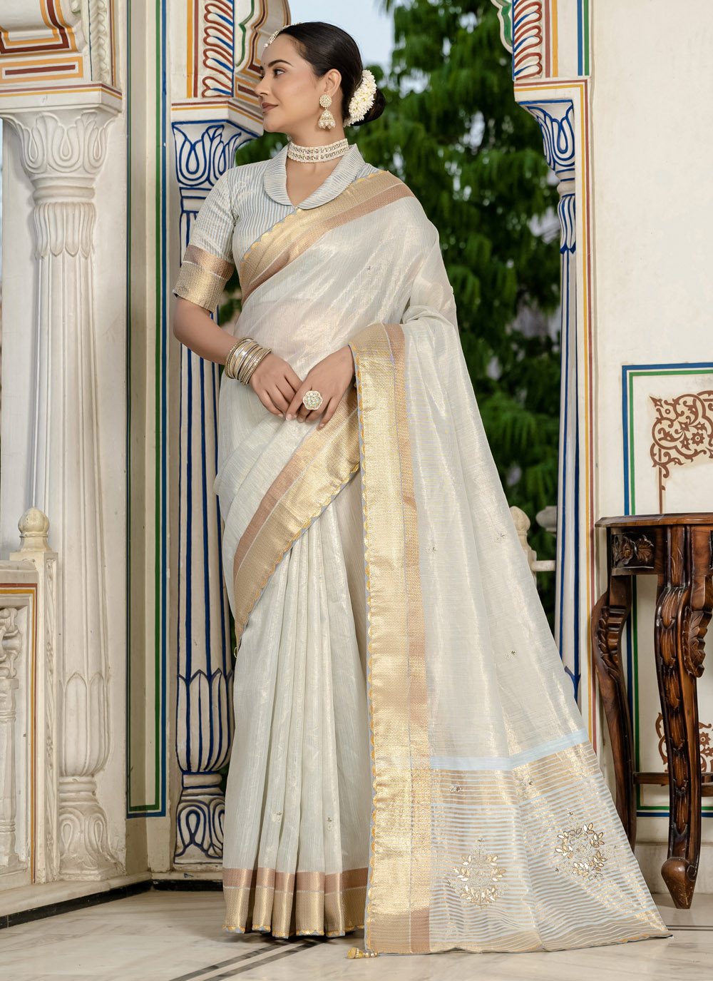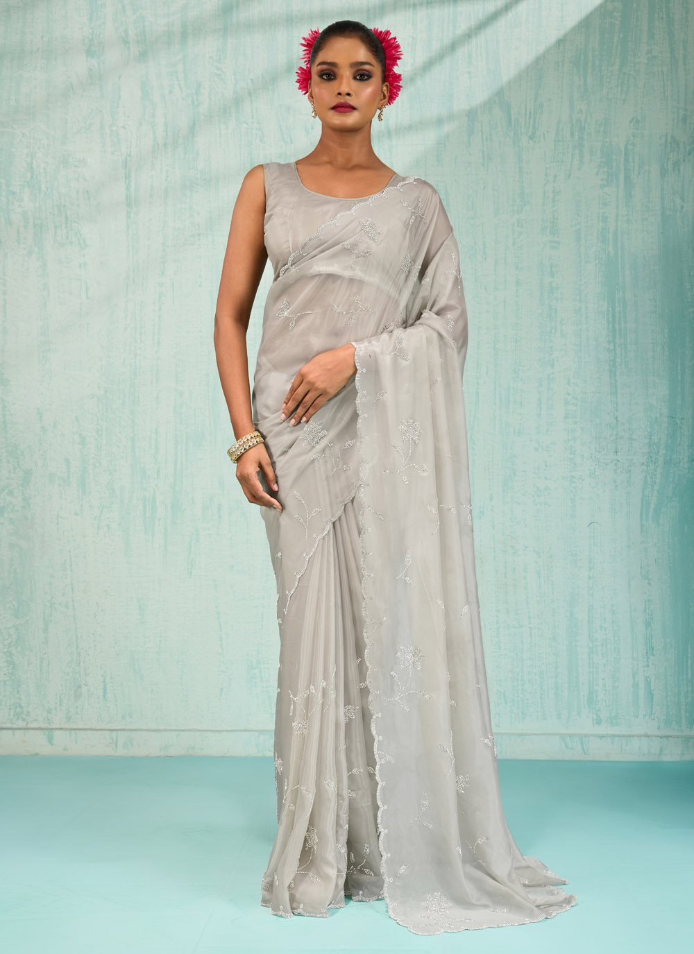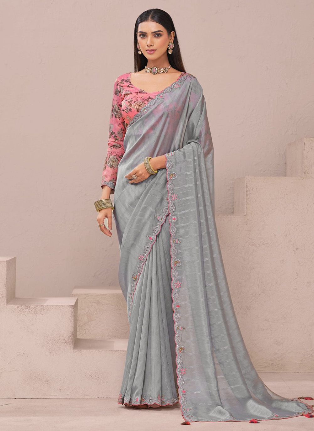 Grey Cut work Fancy Fabric Contemporary Saree for Reception