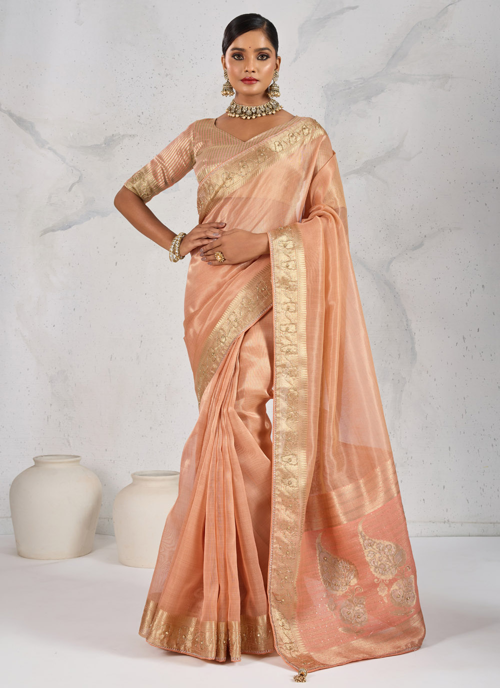 Kanjivaram Silk Zari Meenakari Woven Classic Saree in Peach