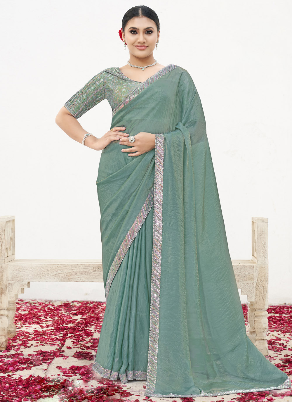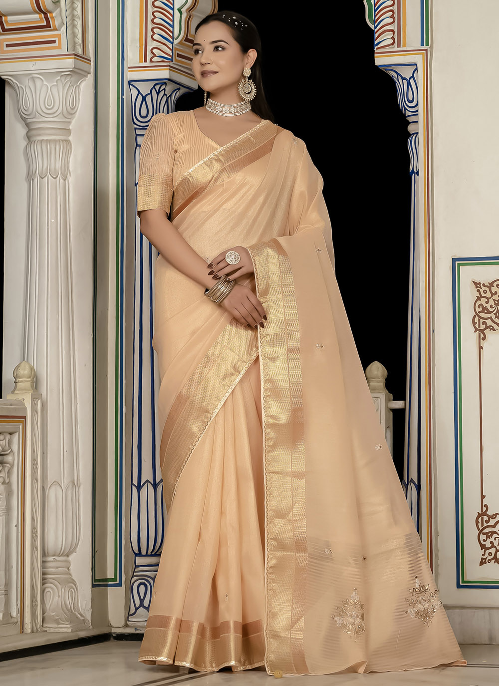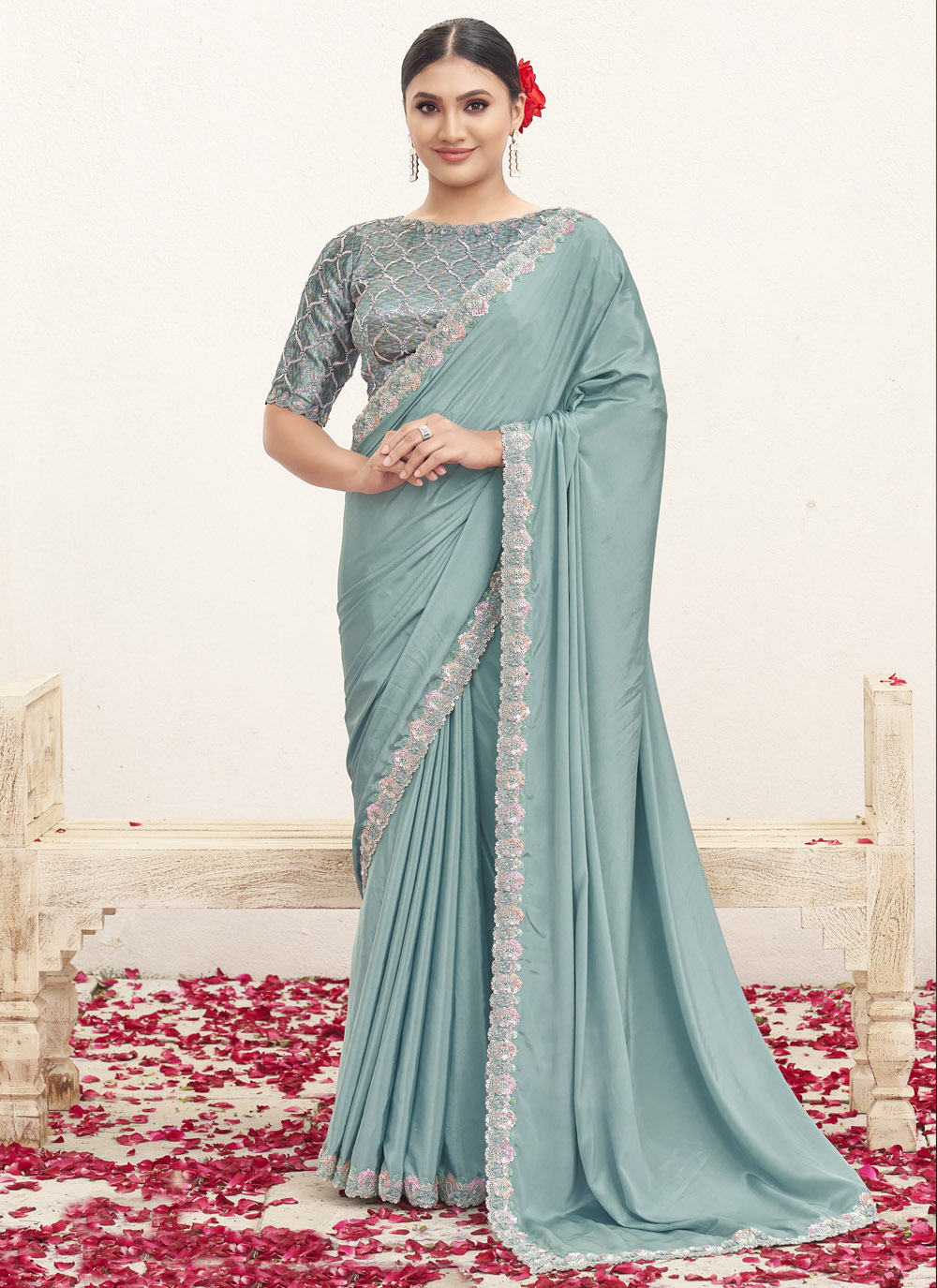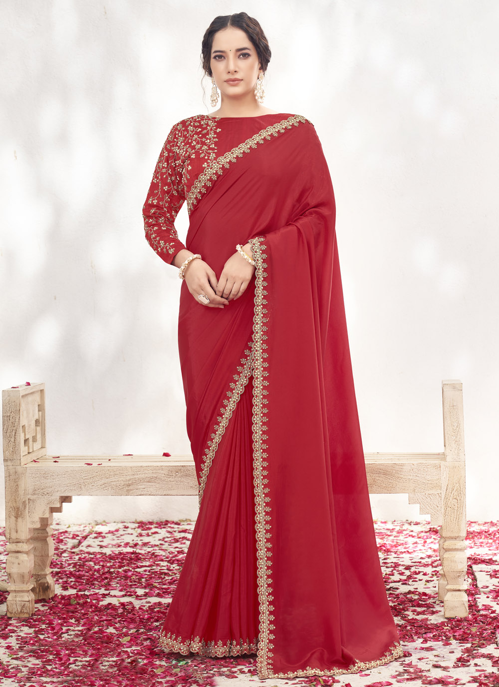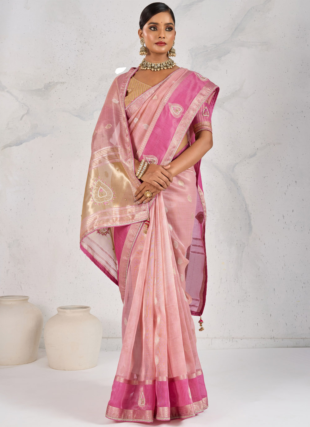 Pink Fancy Fabric Embroidered Border Work Designer Saree