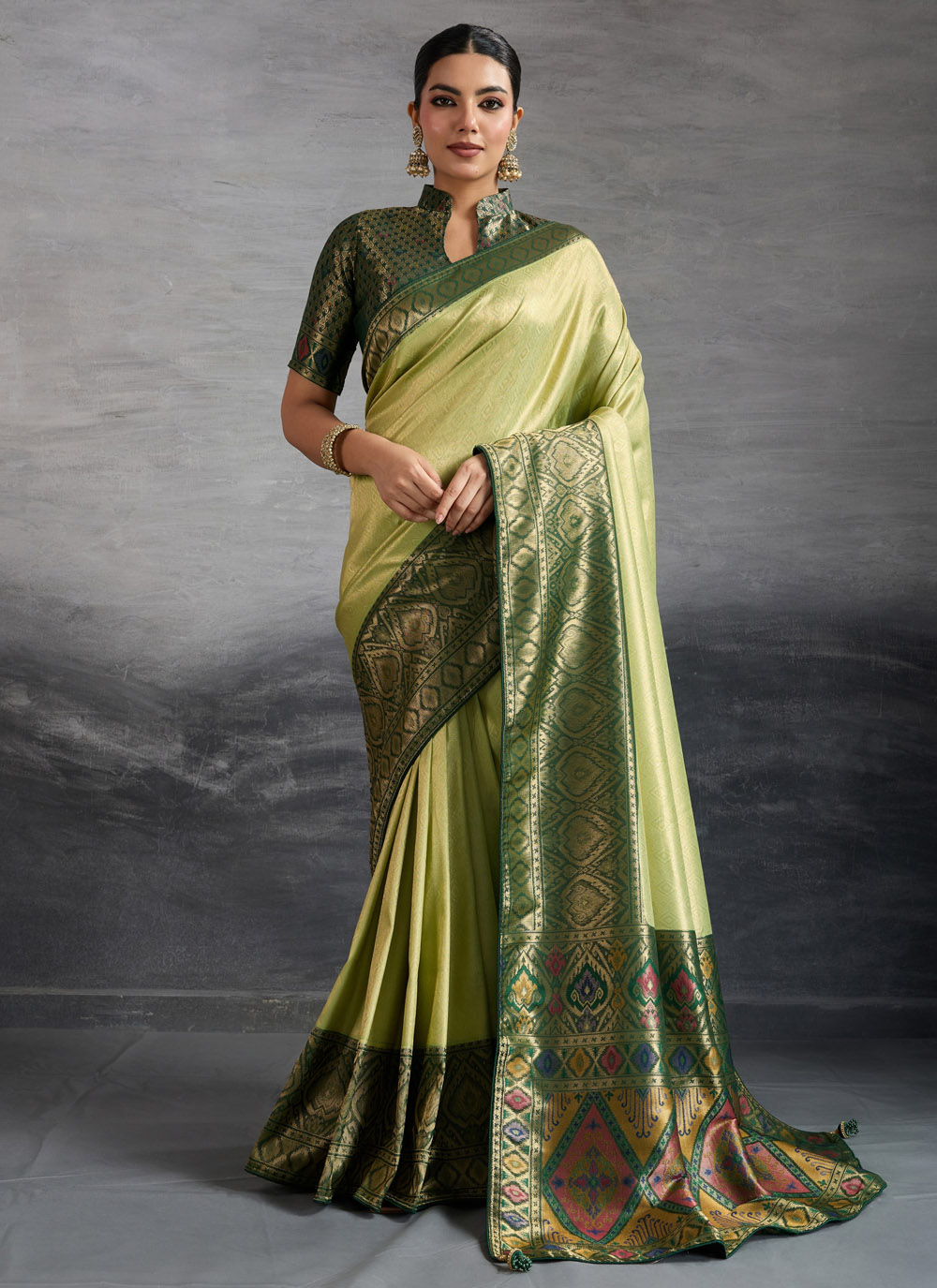 Green Kanjivaram Silk Meenakari Zari Woven Designer Saree