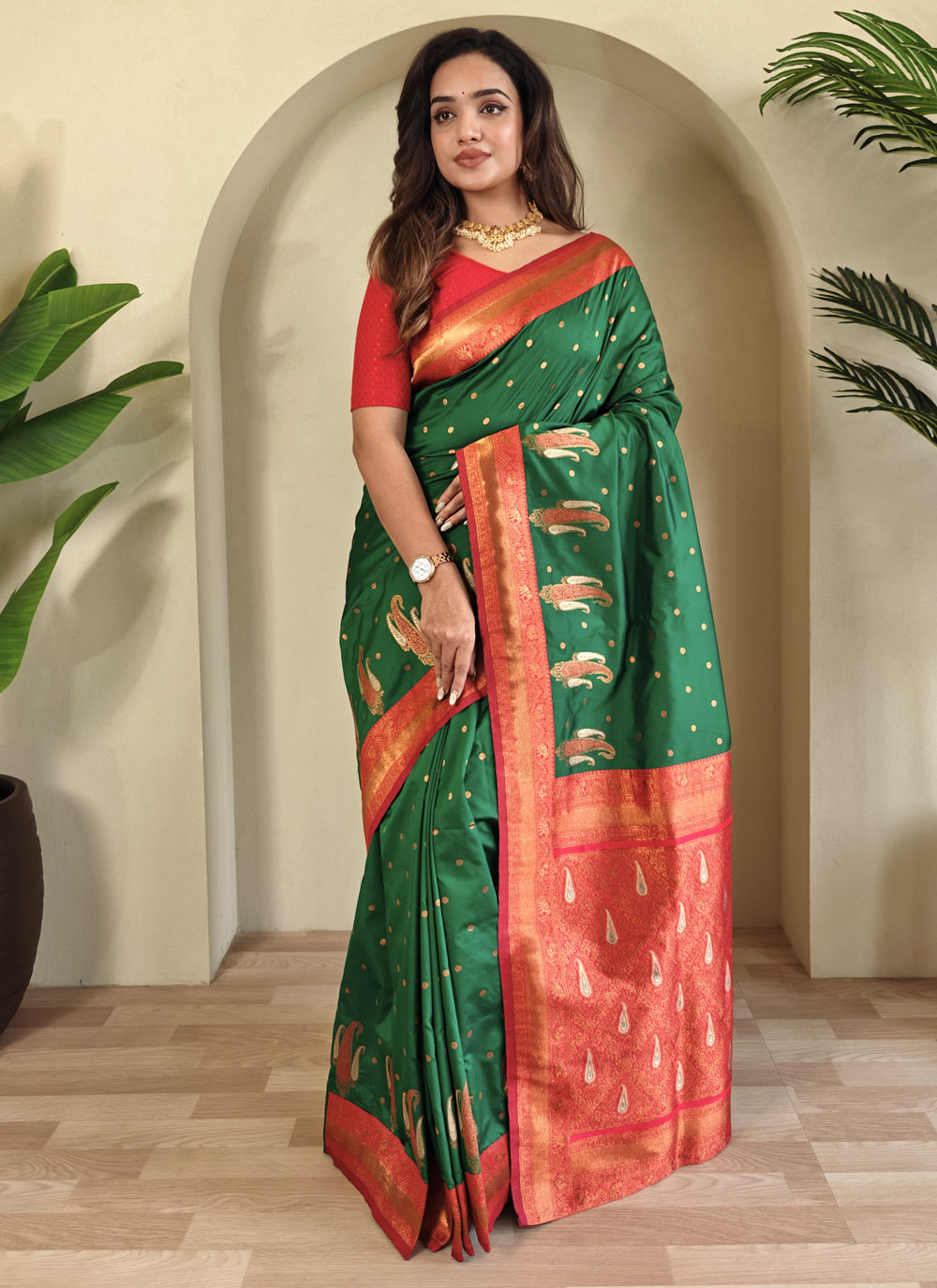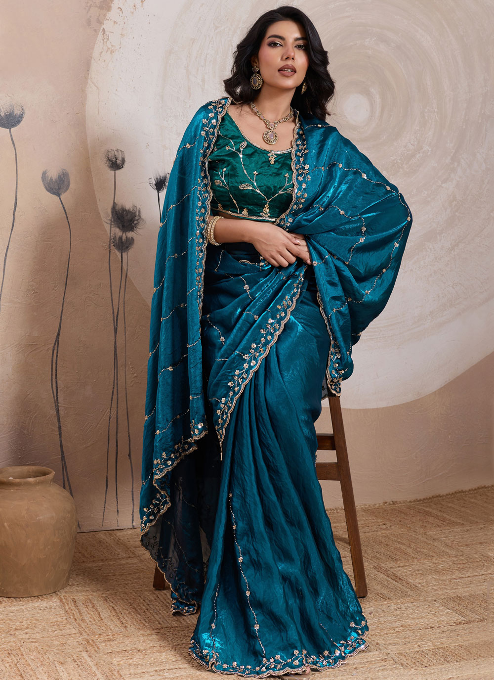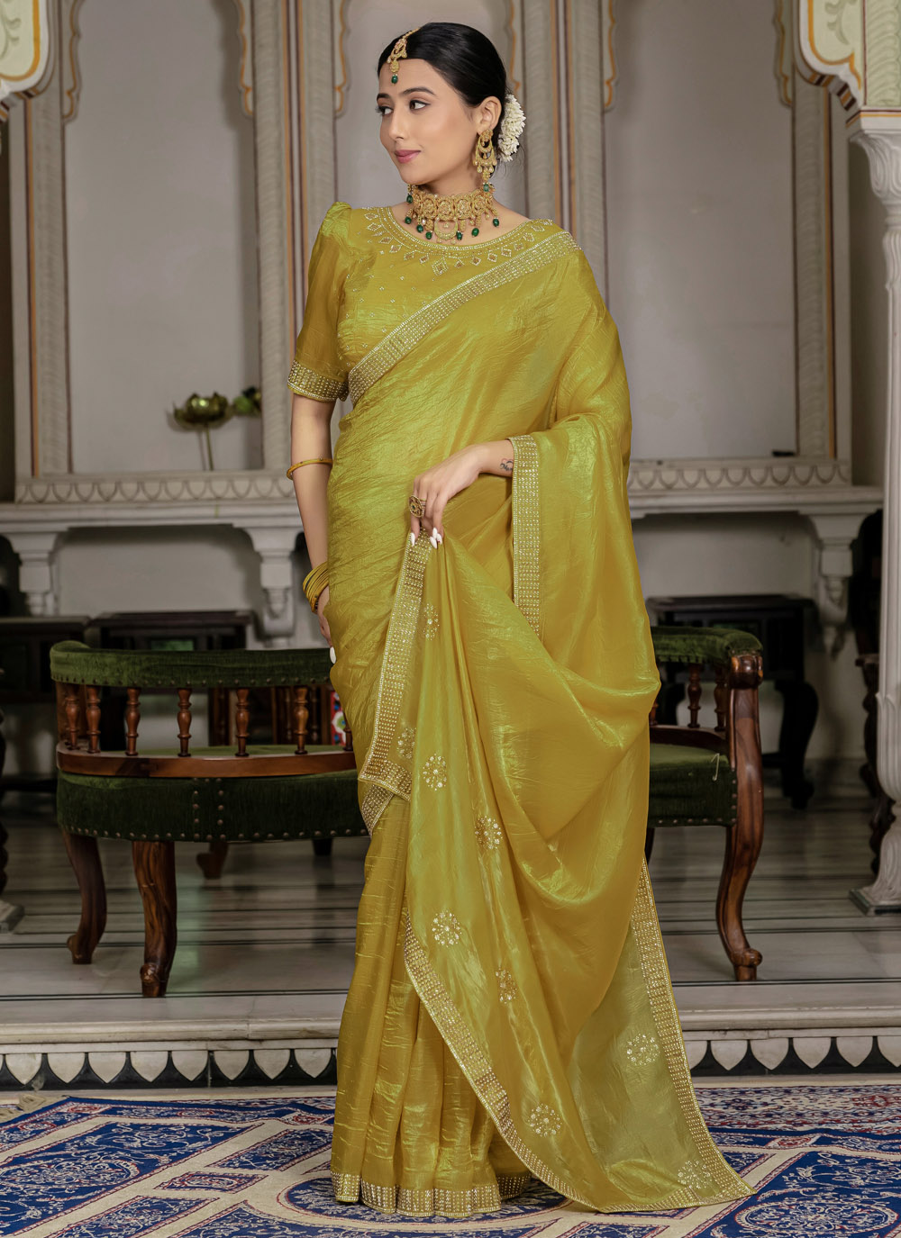 Crush Zarkan and Cut Dana Work Traditional Green Saree
