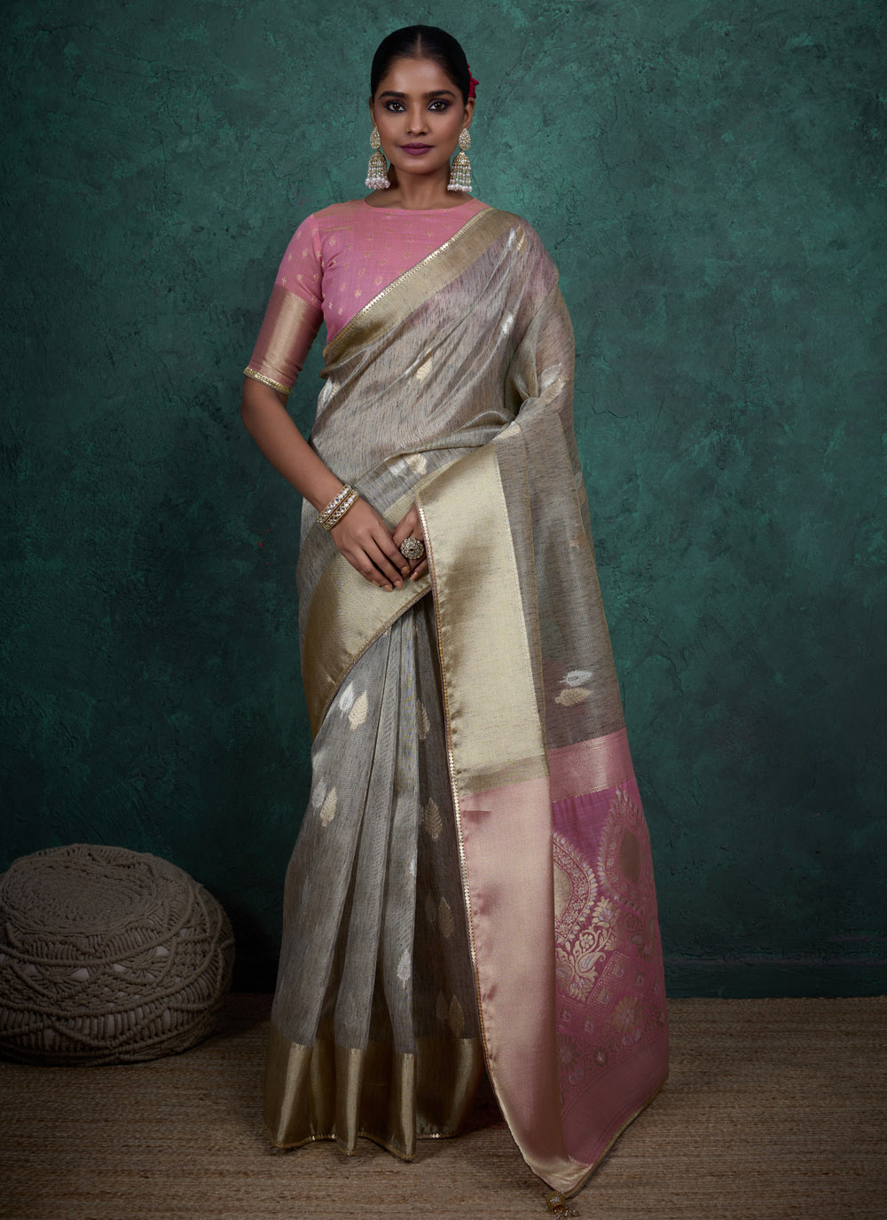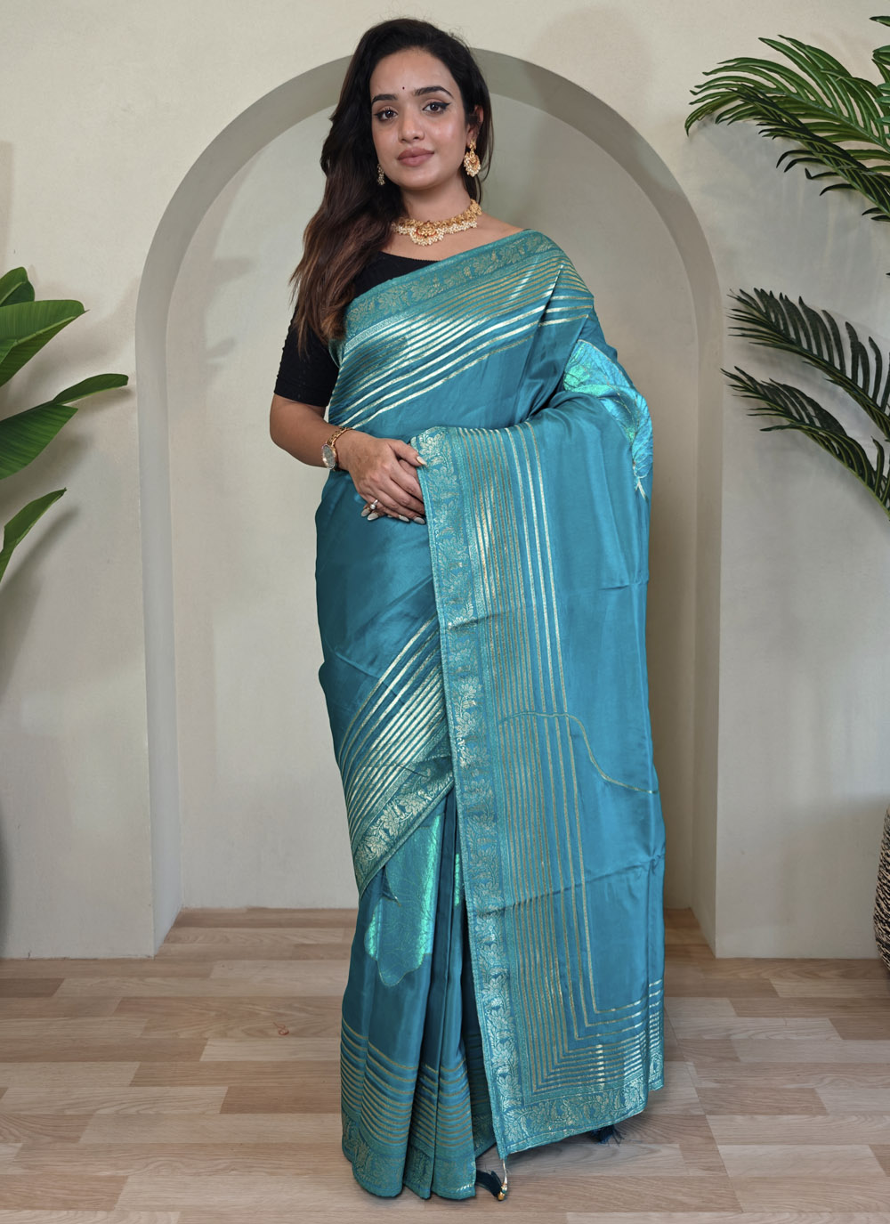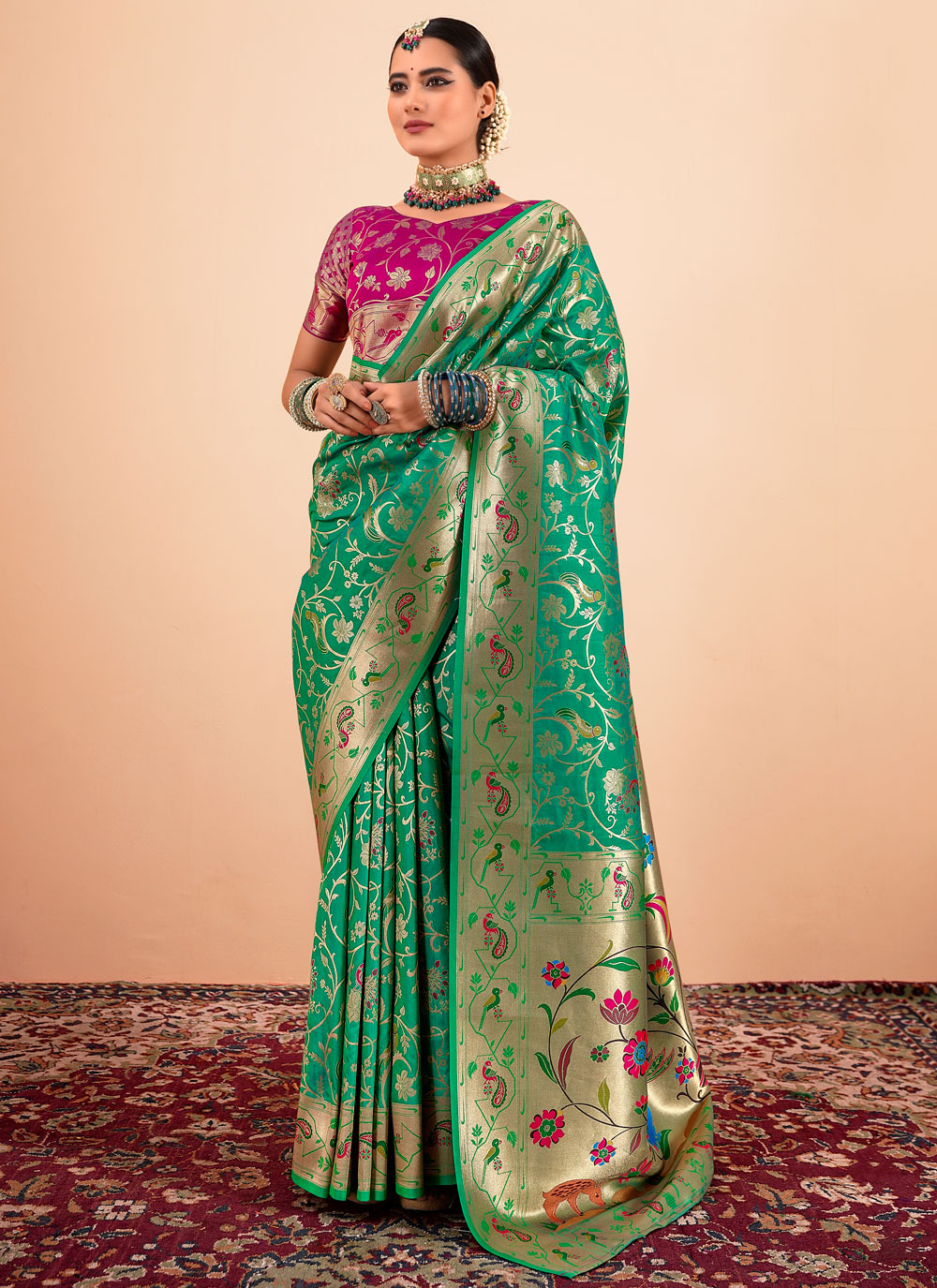Crush Zarkan and Cut Dana Work Traditional Green Saree
