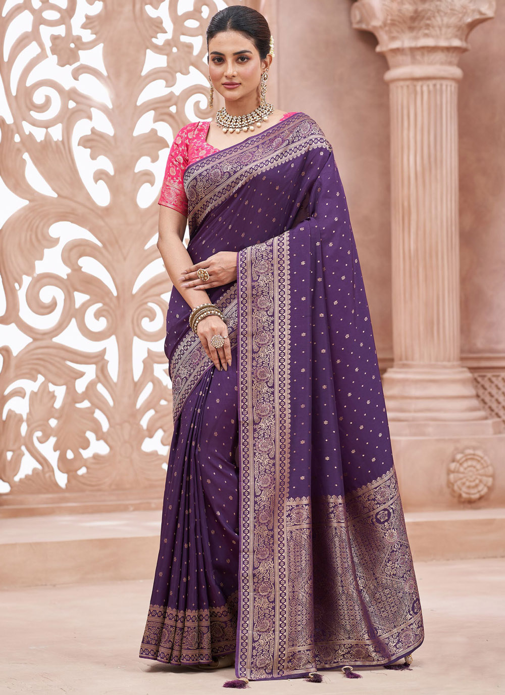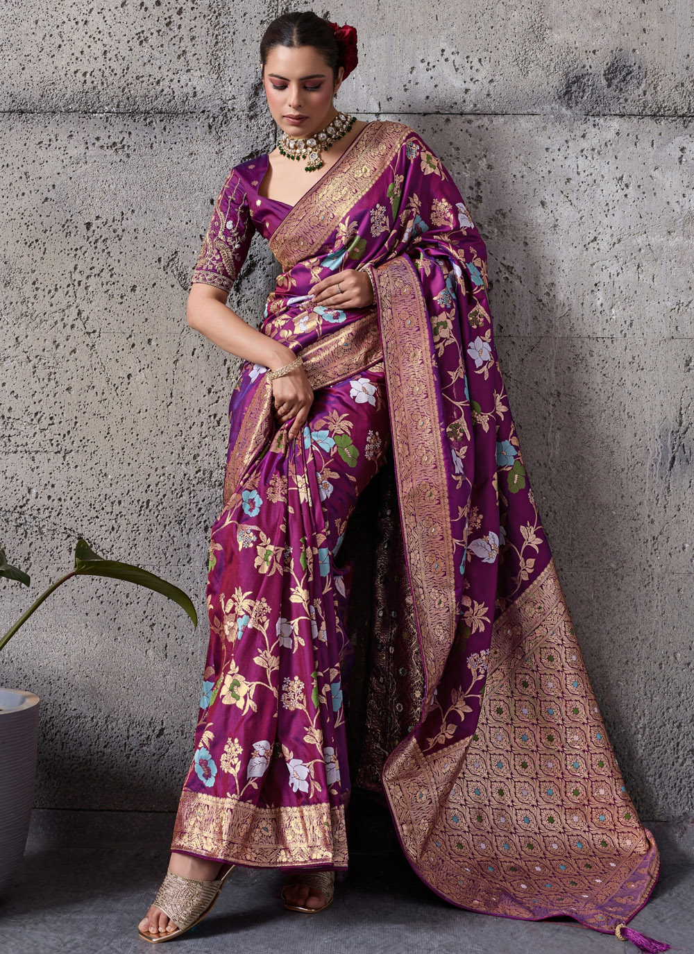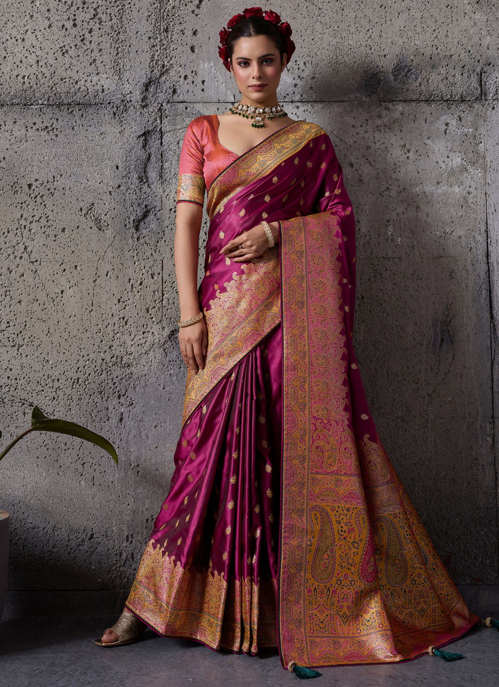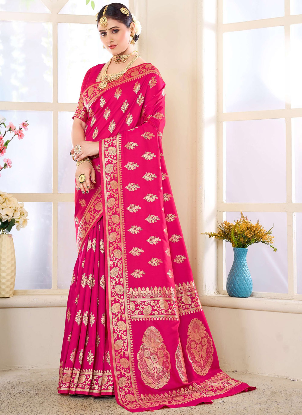 Banarasi Silk Magenta Zari Weaving Work Traditional Saree