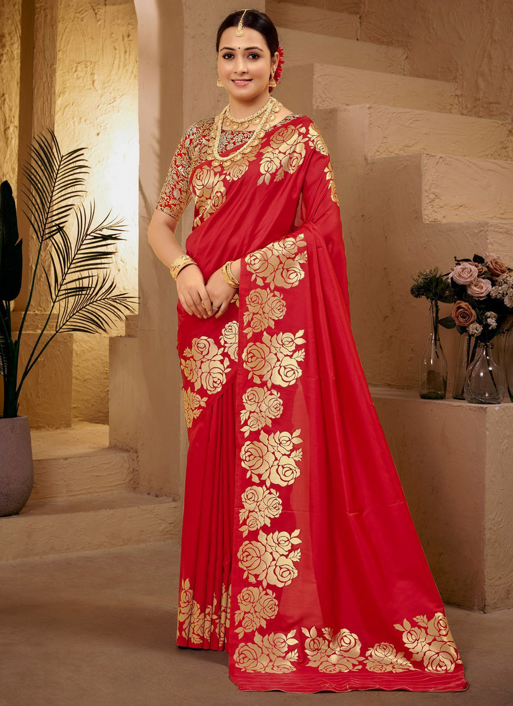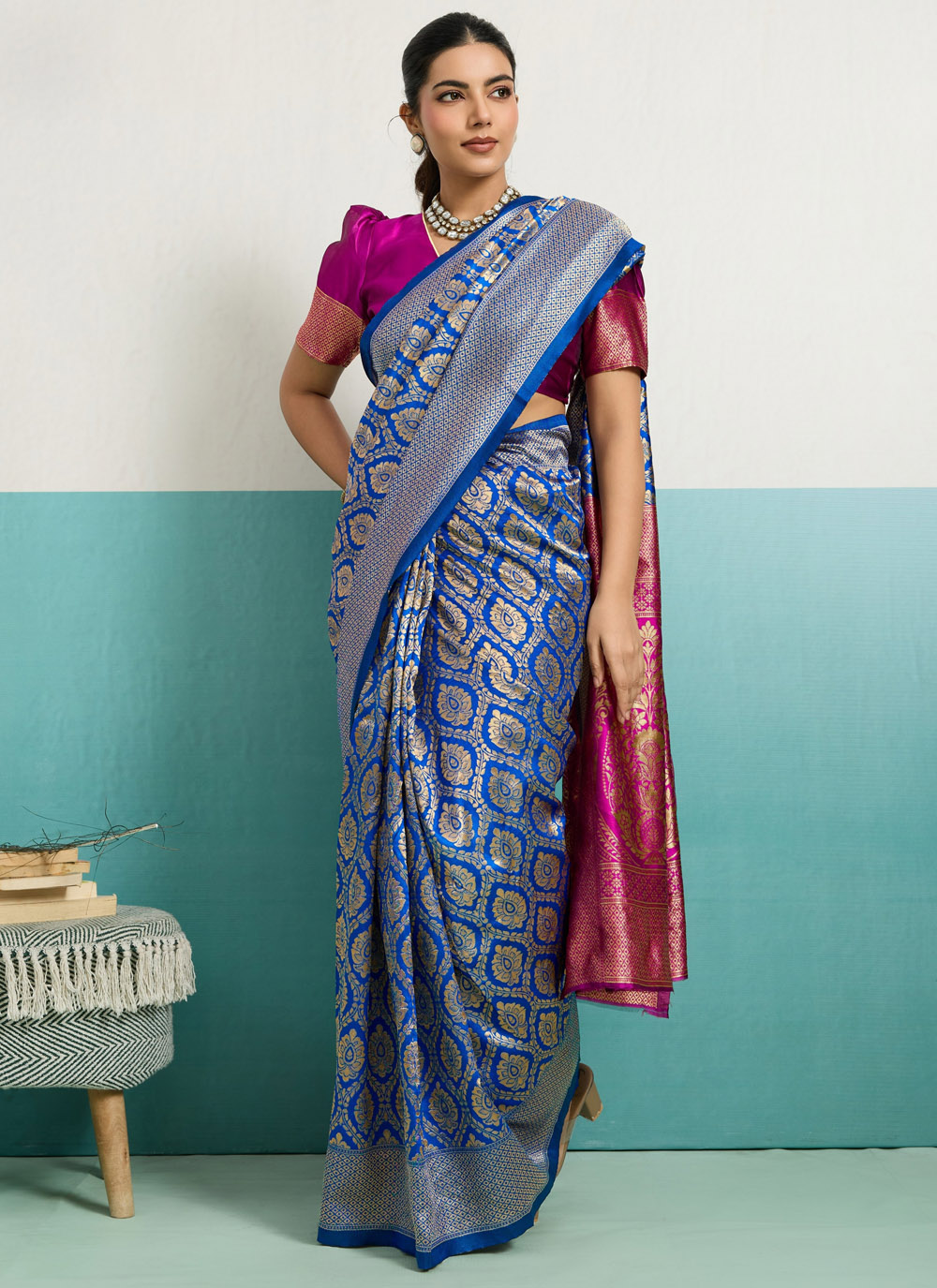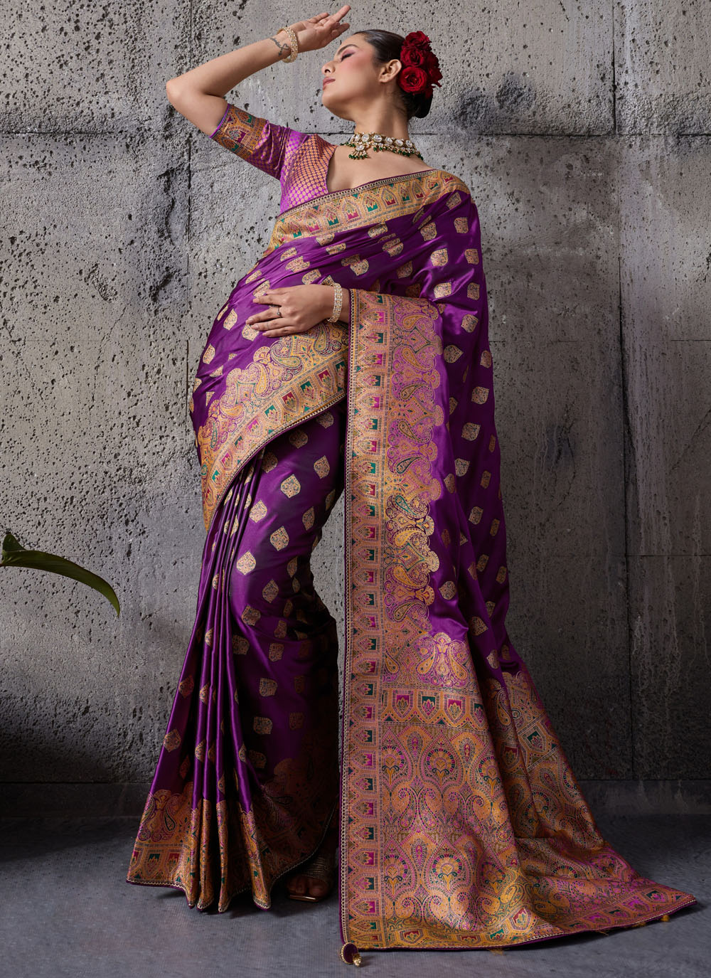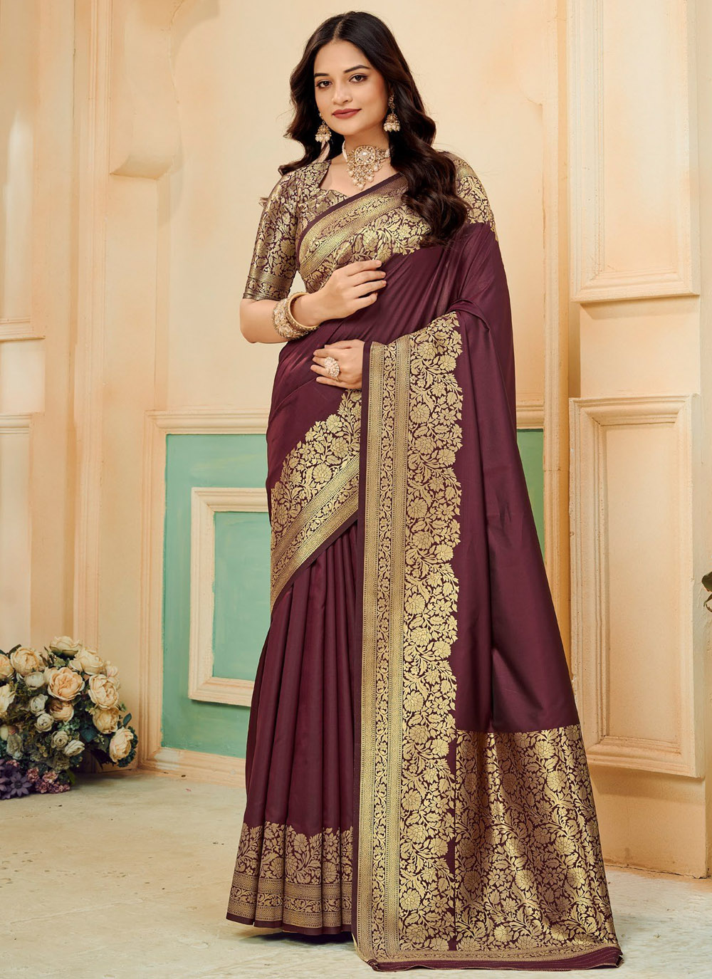 Banarasi Silk Magenta Zari Weaving Work Traditional Saree