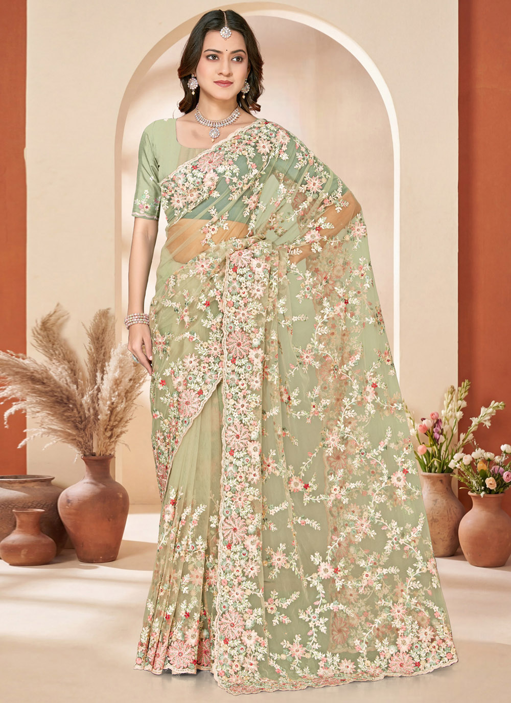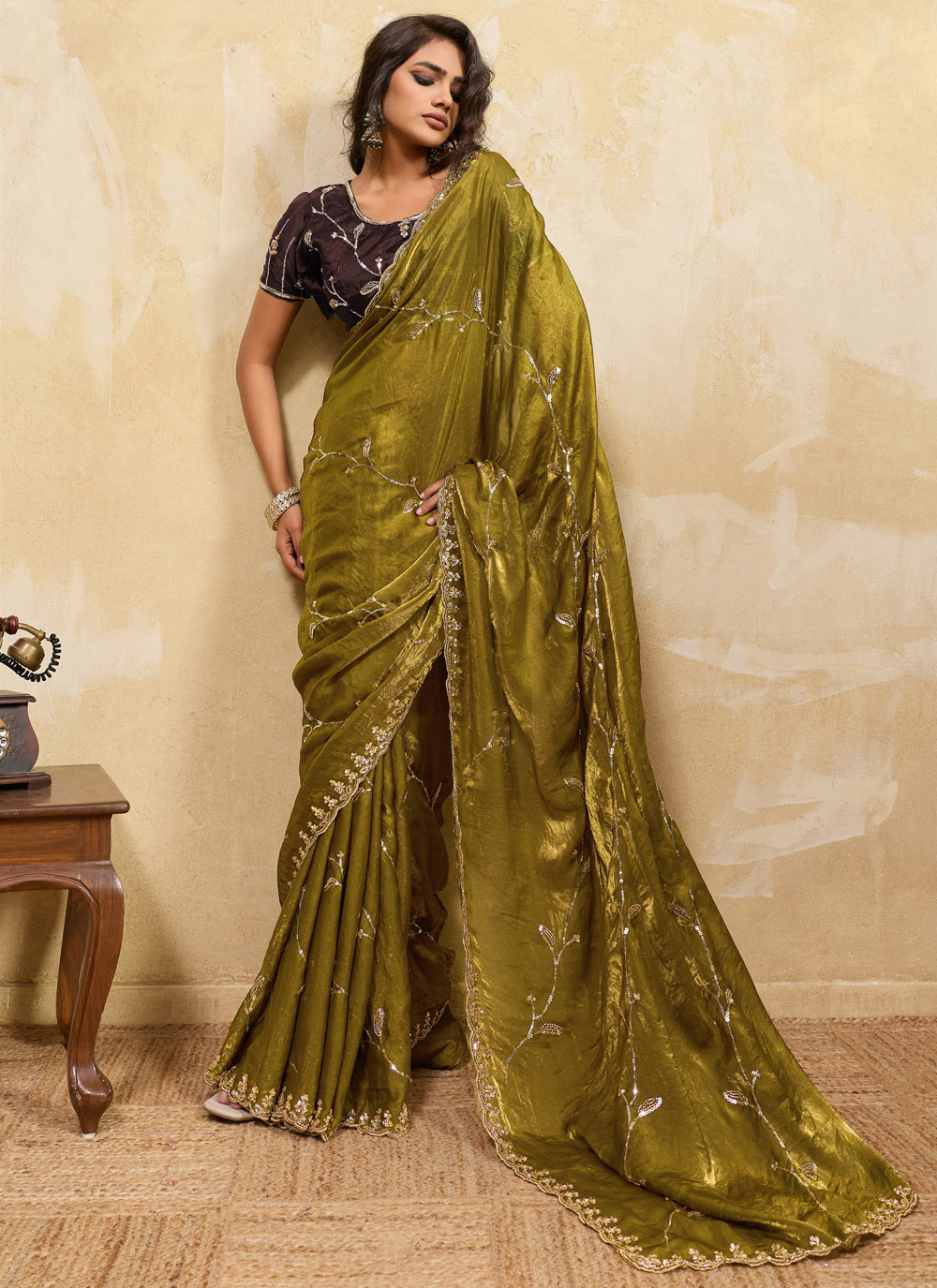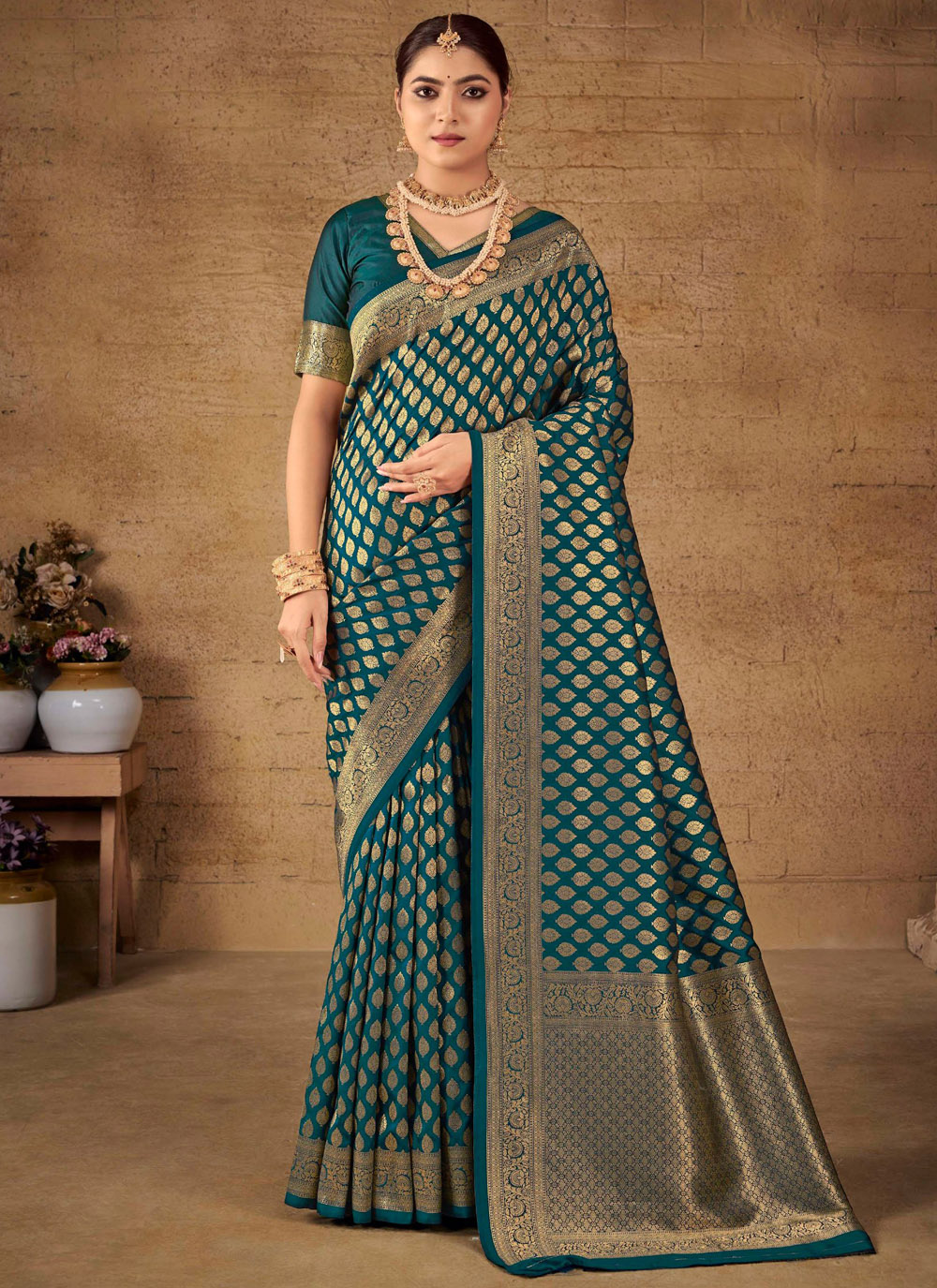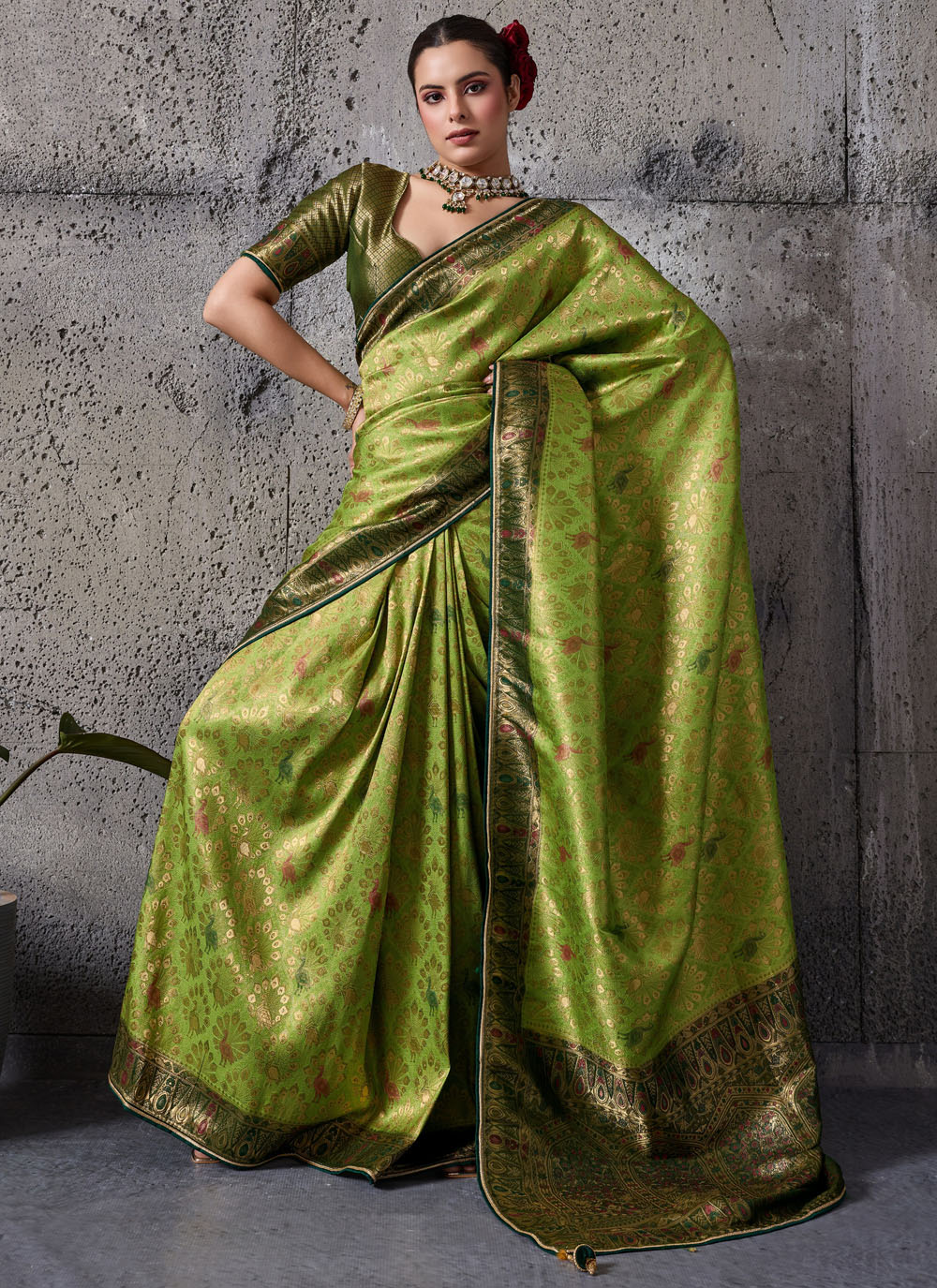 Banarasi Silk Green Zari Weaving Traditional Saree