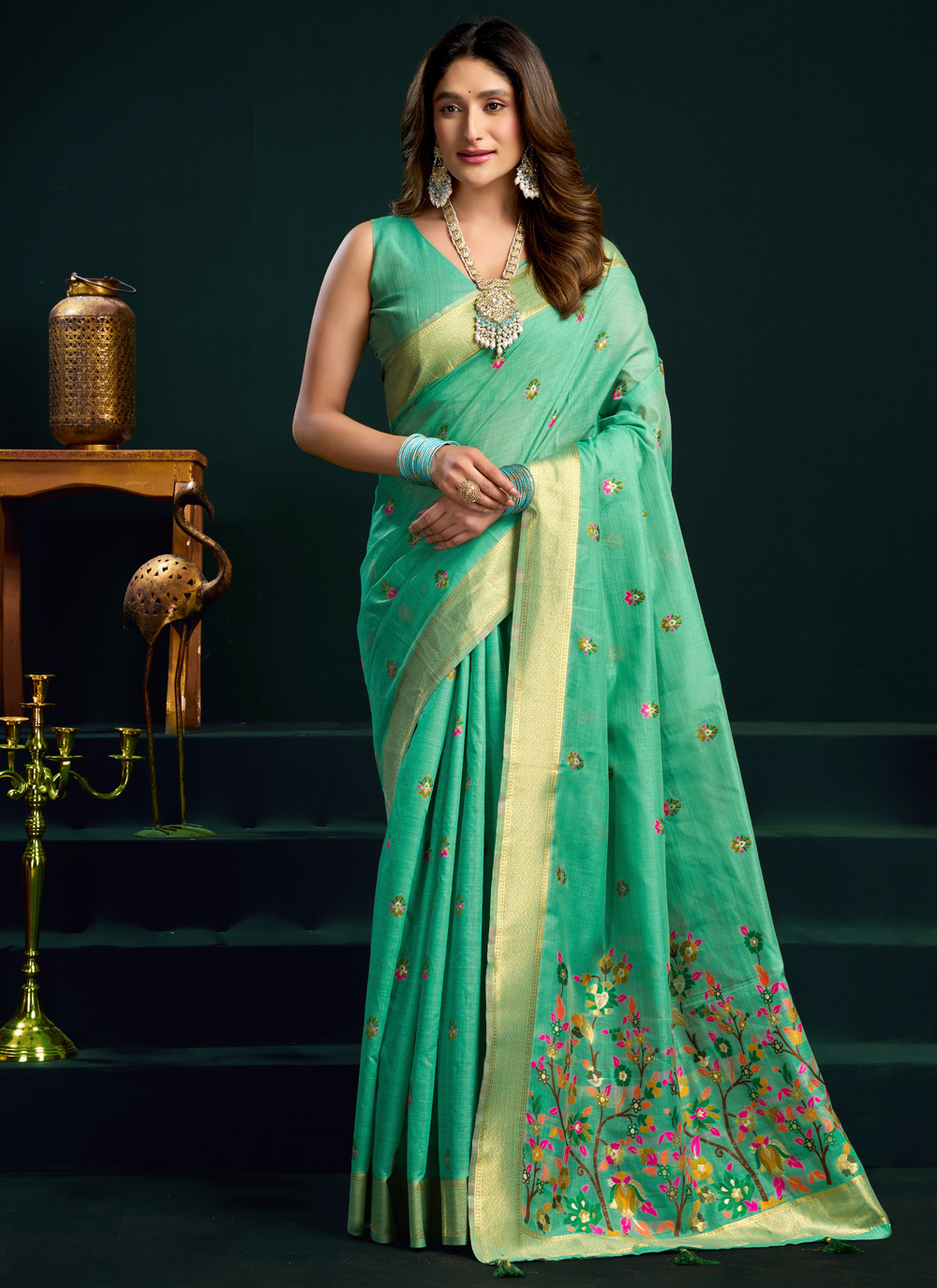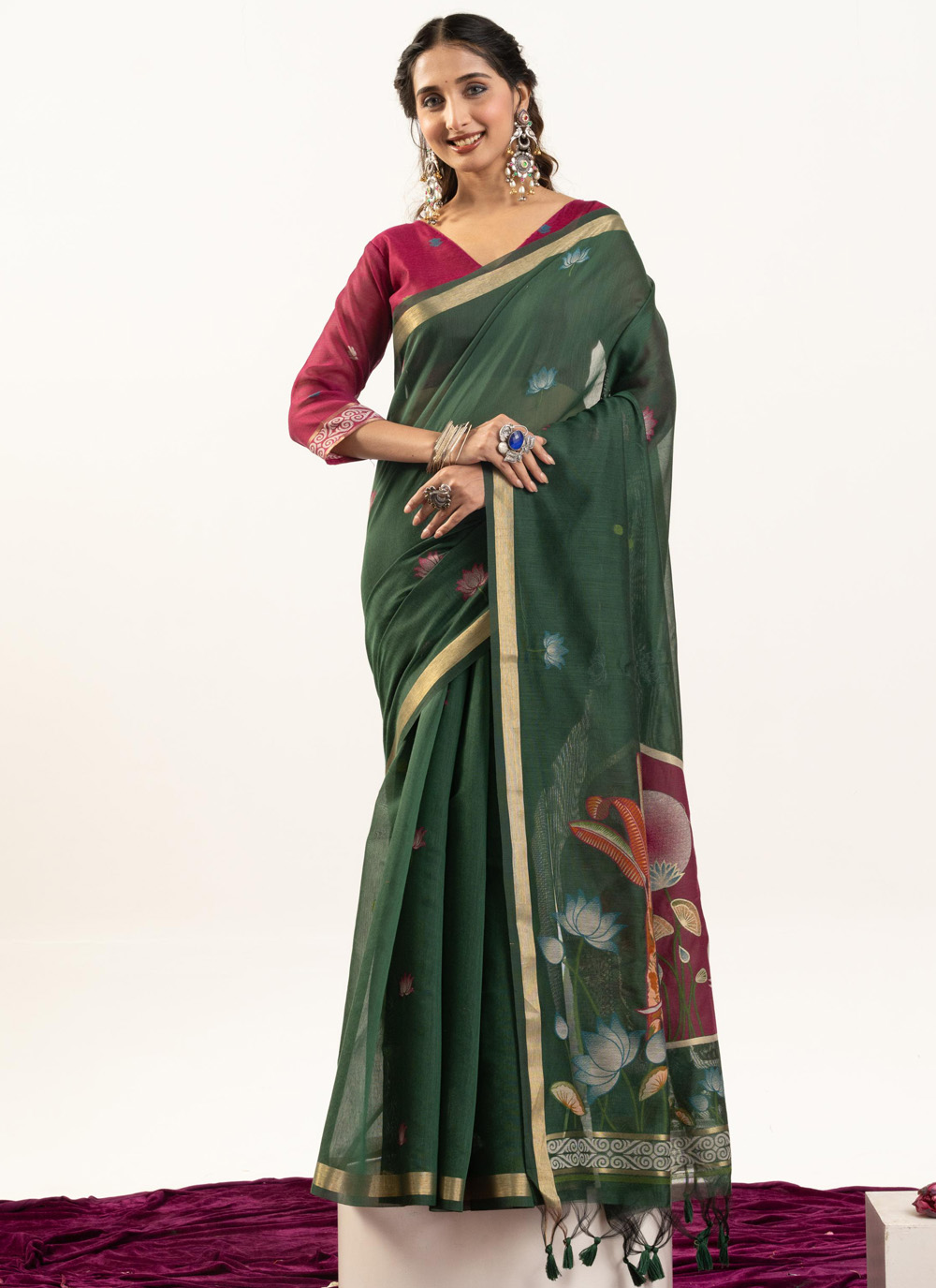 Weaving Zari Banarasi Silk Traditional Green Saree